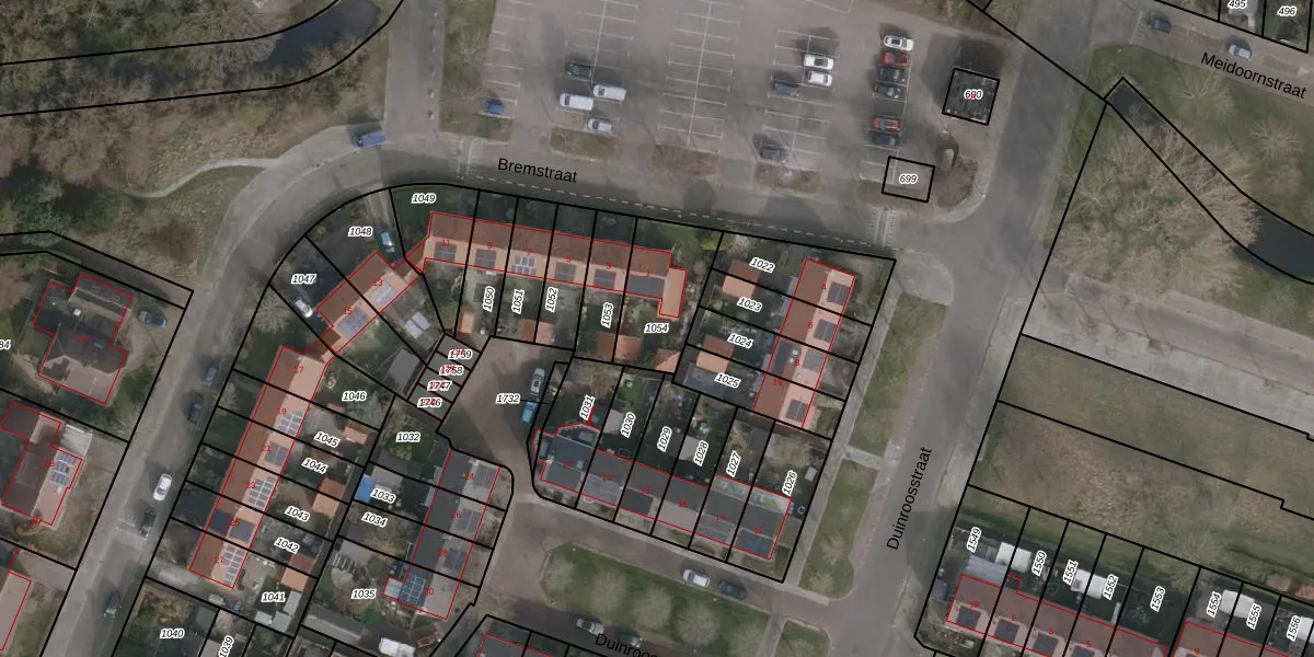 Gebruik de zoekbalk of klik op een perceel om informatie over het perceel te bekijken.