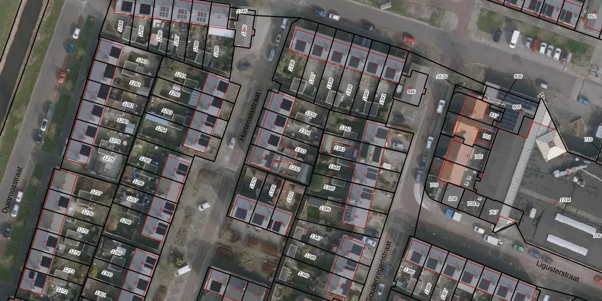 Gebruik de zoekbalk of klik op een perceel om informatie over het perceel te bekijken.