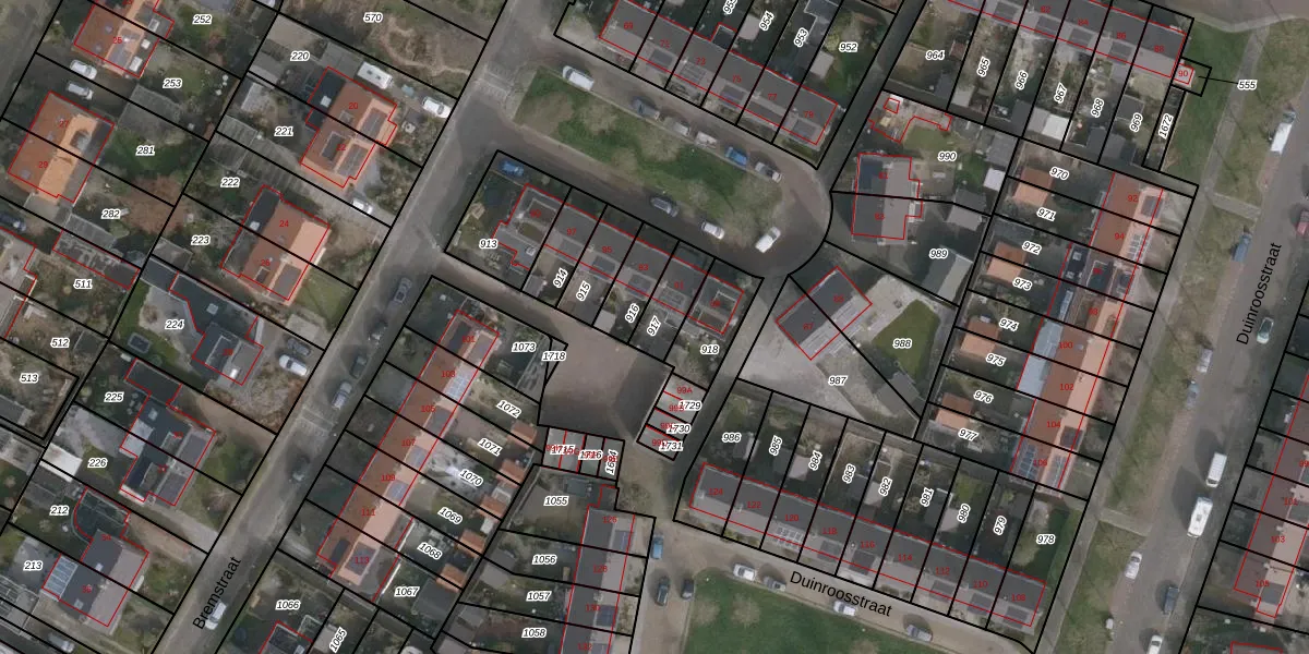 Gebruik de zoekbalk of klik op een perceel om informatie over het perceel te bekijken.
