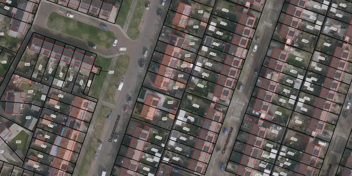 Gebruik de zoekbalk of klik op een perceel om informatie over het perceel te bekijken.