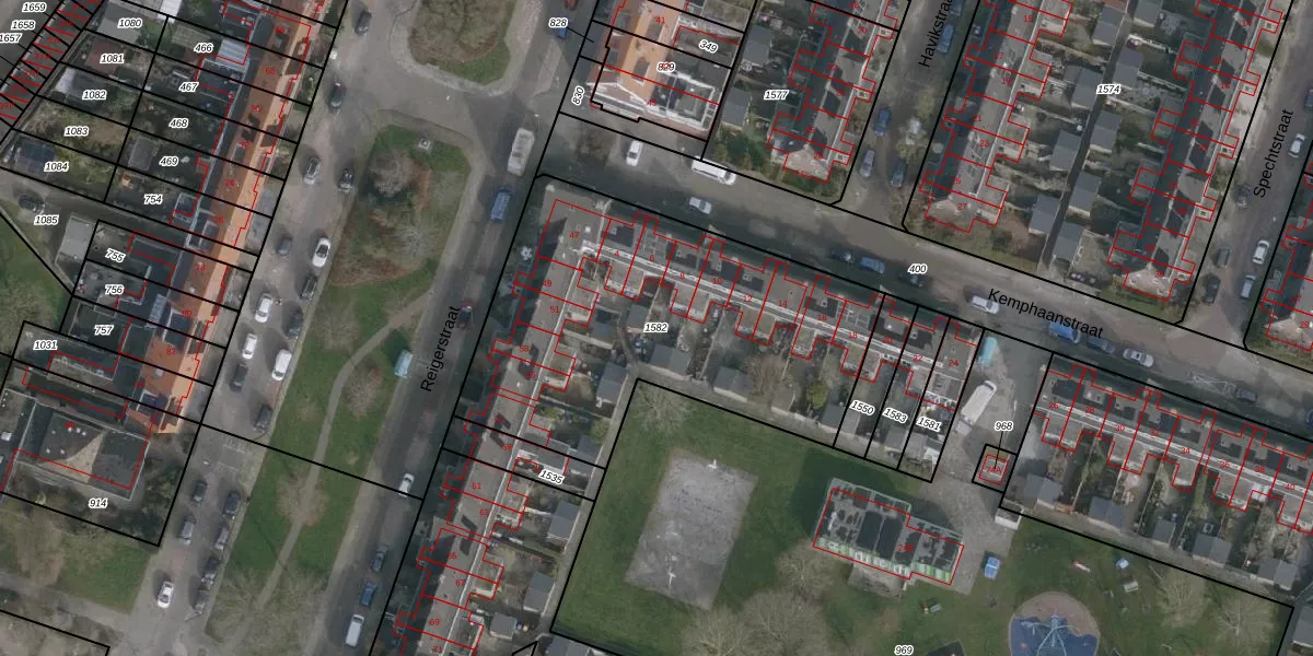Gebruik de zoekbalk of klik op een perceel om informatie over het perceel te bekijken.