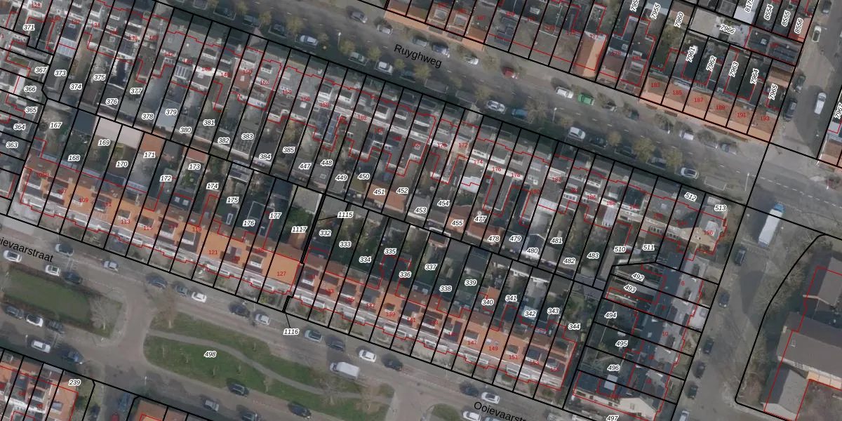 Gebruik de zoekbalk of klik op een perceel om informatie over het perceel te bekijken.