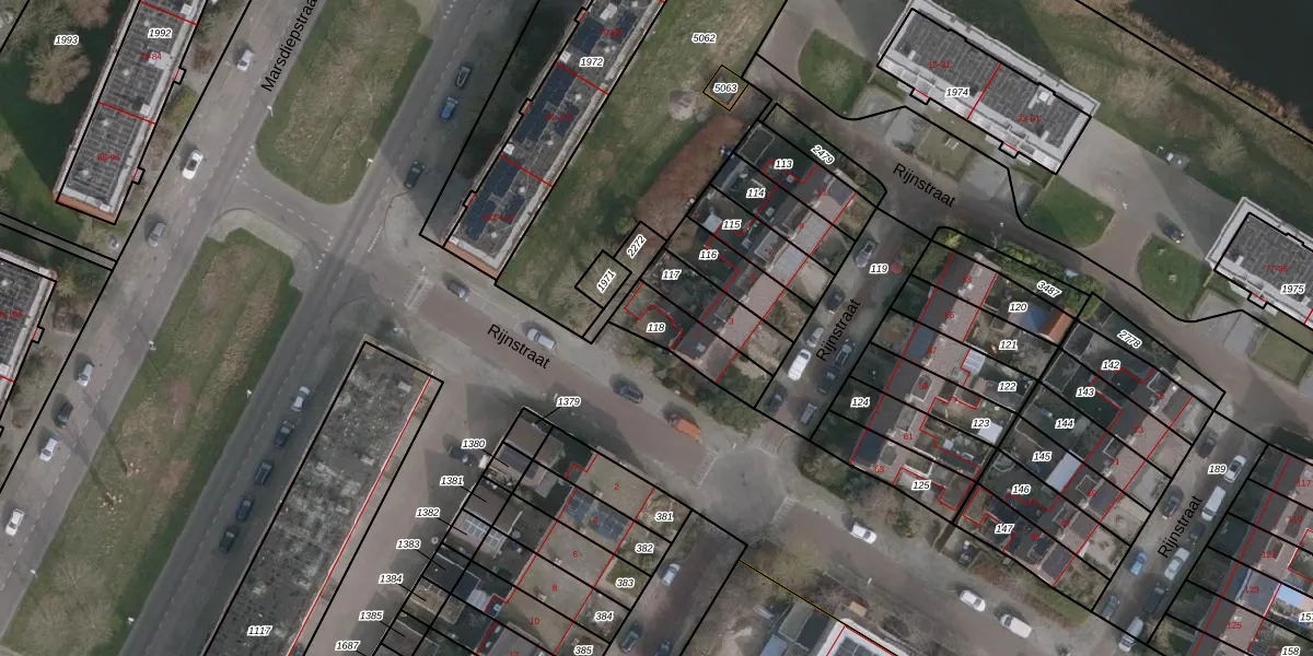 Gebruik de zoekbalk of klik op een perceel om informatie over het perceel te bekijken.