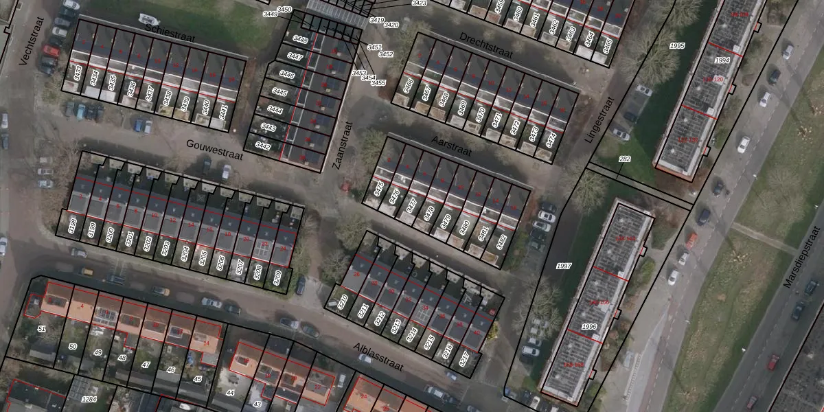 Gebruik de zoekbalk of klik op een perceel om informatie over het perceel te bekijken.
