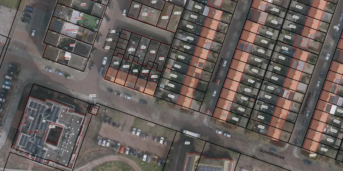 Gebruik de zoekbalk of klik op een perceel om informatie over het perceel te bekijken.