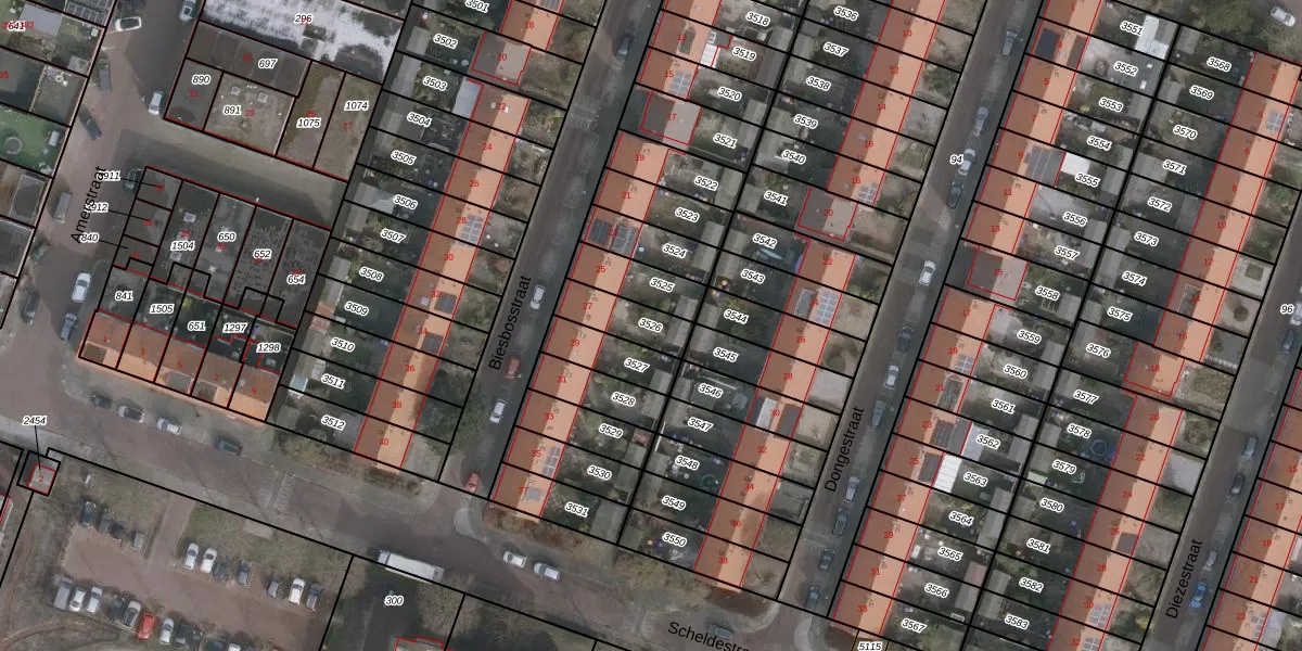 Gebruik de zoekbalk of klik op een perceel om informatie over het perceel te bekijken.