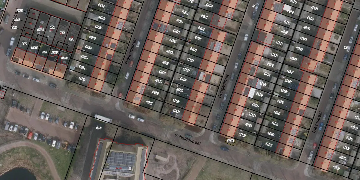 Gebruik de zoekbalk of klik op een perceel om informatie over het perceel te bekijken.