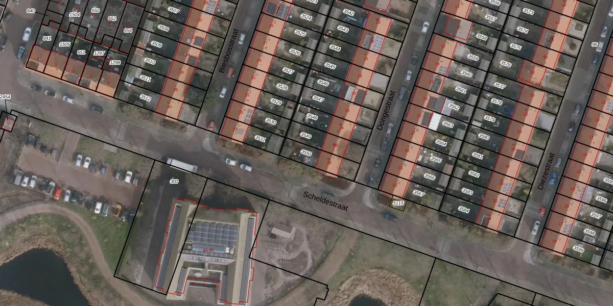Gebruik de zoekbalk of klik op een perceel om informatie over het perceel te bekijken.
