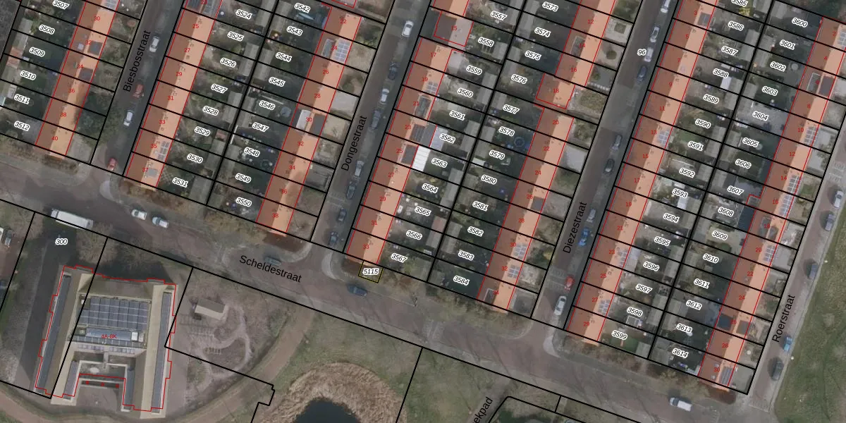 Gebruik de zoekbalk of klik op een perceel om informatie over het perceel te bekijken.