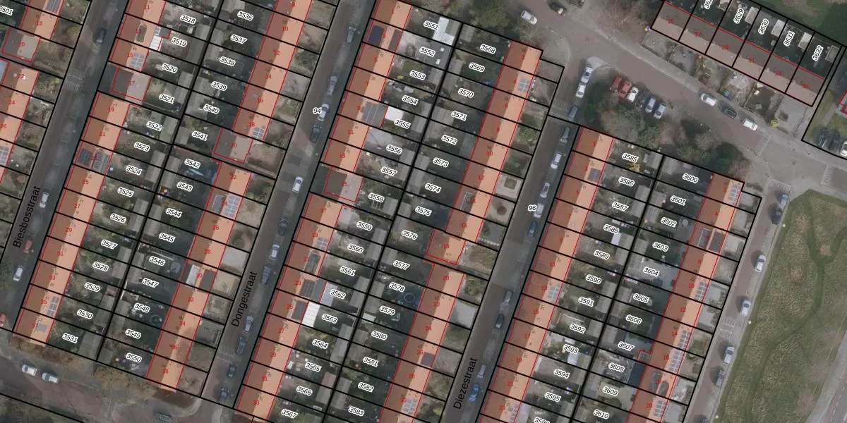Gebruik de zoekbalk of klik op een perceel om informatie over het perceel te bekijken.