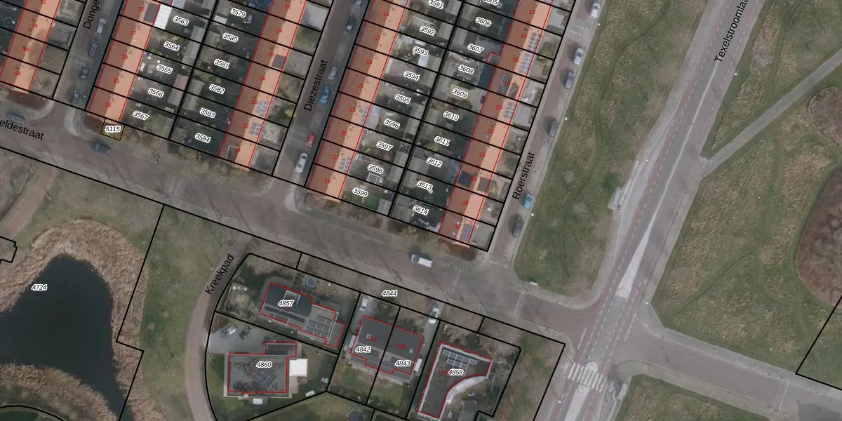 Gebruik de zoekbalk of klik op een perceel om informatie over het perceel te bekijken.