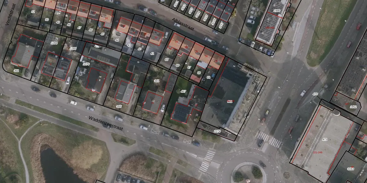 Gebruik de zoekbalk of klik op een perceel om informatie over het perceel te bekijken.