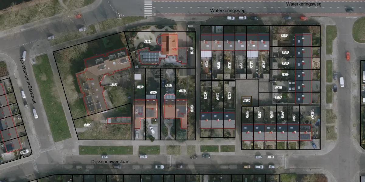 Gebruik de zoekbalk of klik op een perceel om informatie over het perceel te bekijken.