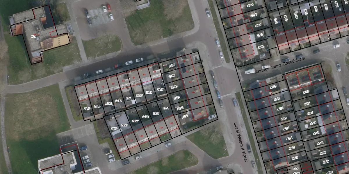 Gebruik de zoekbalk of klik op een perceel om informatie over het perceel te bekijken.