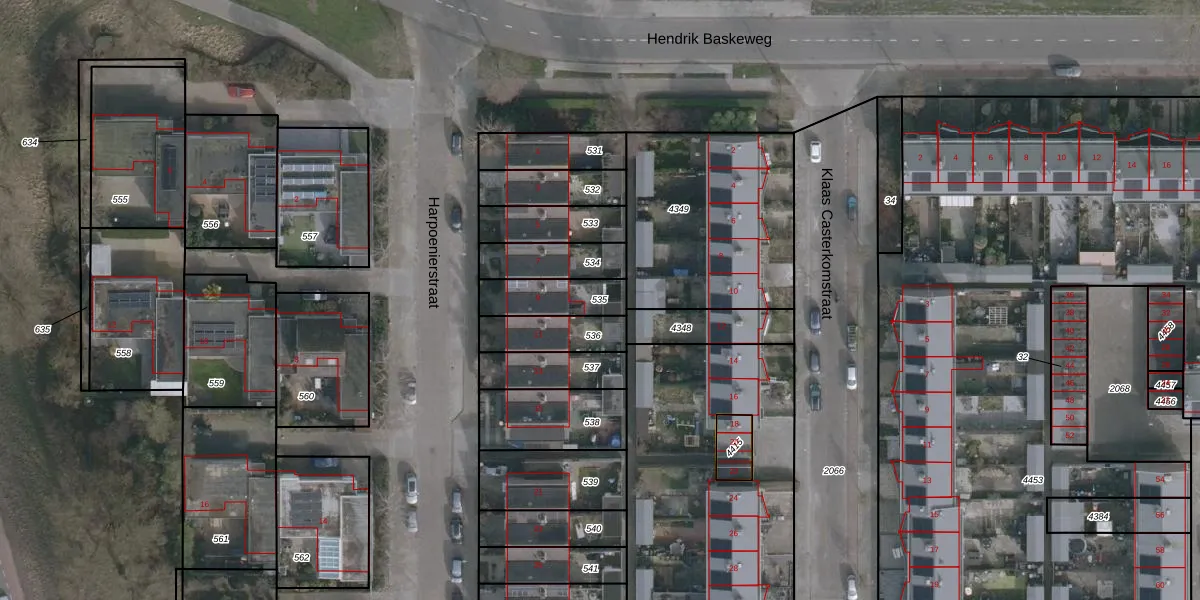 Gebruik de zoekbalk of klik op een perceel om informatie over het perceel te bekijken.