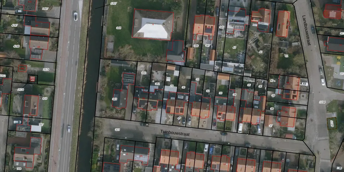 Gebruik de zoekbalk of klik op een perceel om informatie over het perceel te bekijken.