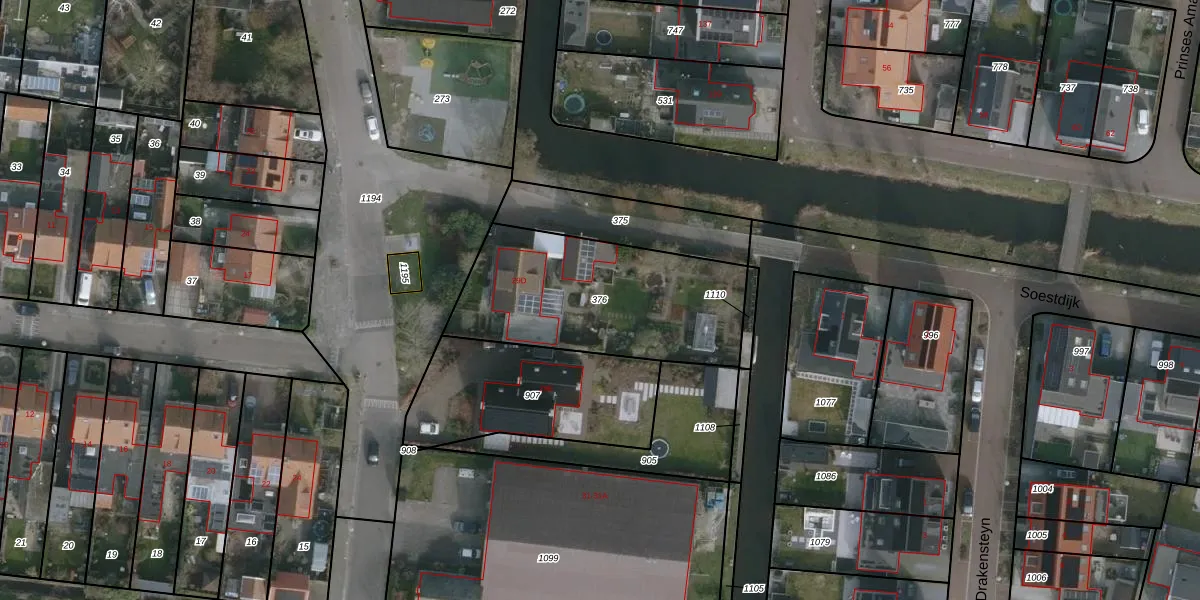 Gebruik de zoekbalk of klik op een perceel om informatie over het perceel te bekijken.