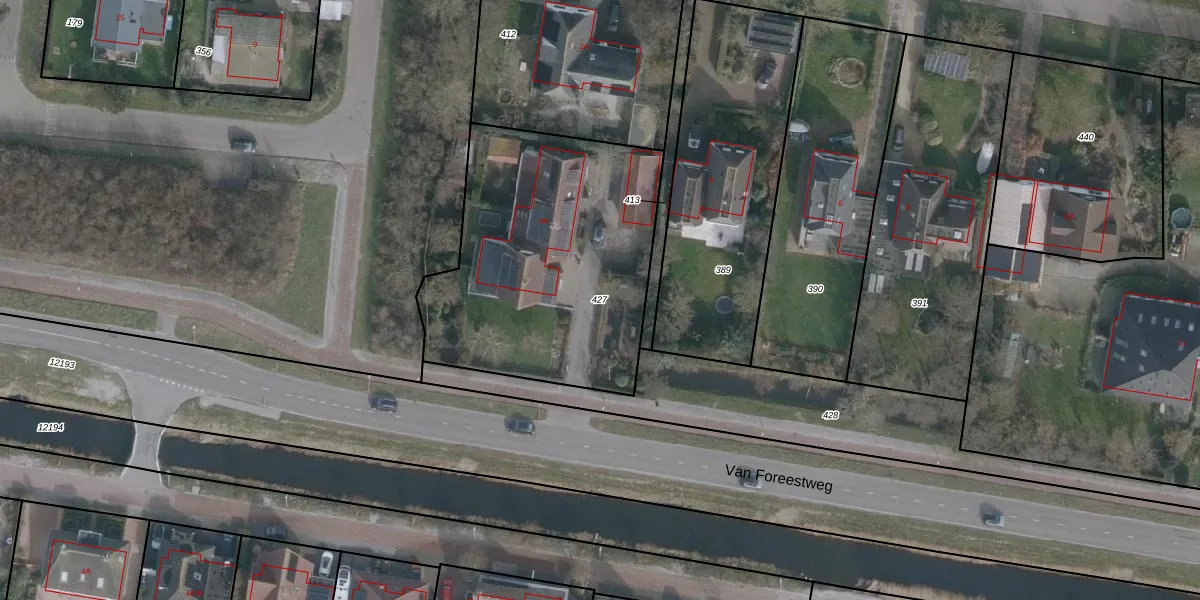 Gebruik de zoekbalk of klik op een perceel om informatie over het perceel te bekijken.