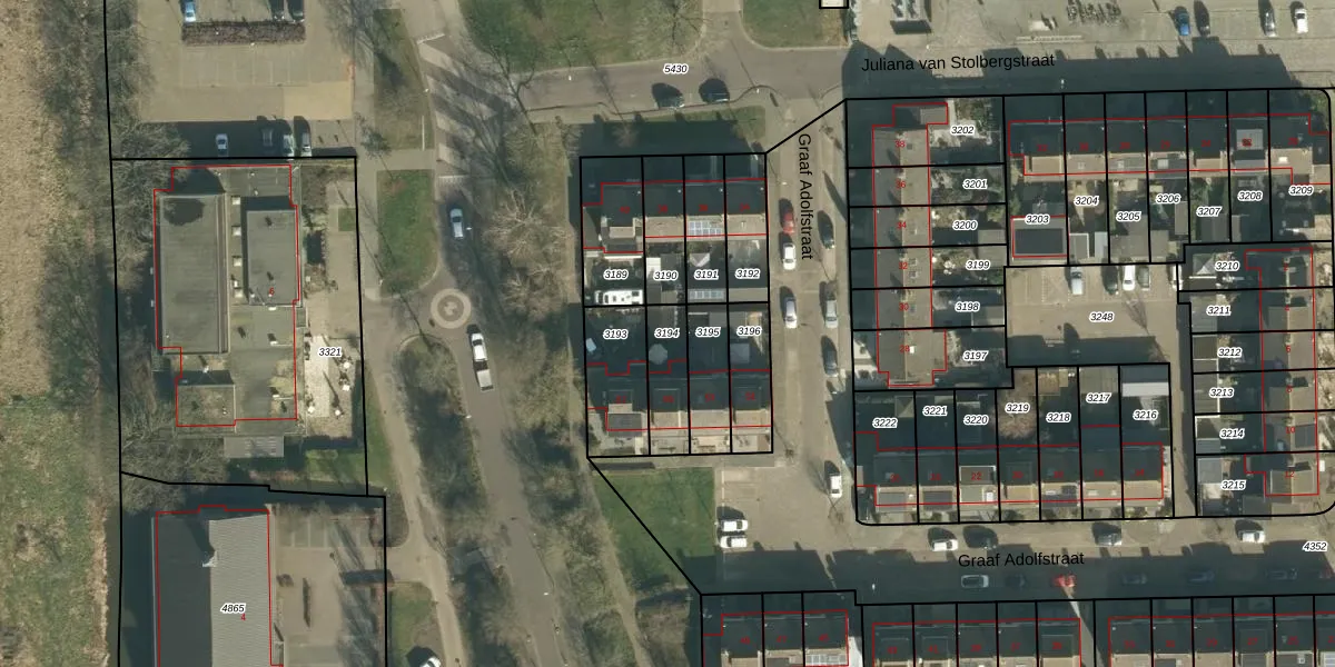 Gebruik de zoekbalk of klik op een perceel om informatie over het perceel te bekijken.