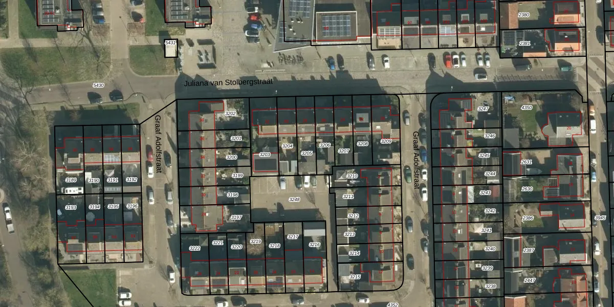 Gebruik de zoekbalk of klik op een perceel om informatie over het perceel te bekijken.