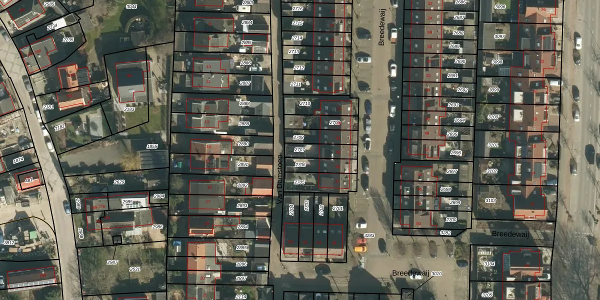 Gebruik de zoekbalk of klik op een perceel om informatie over het perceel te bekijken.