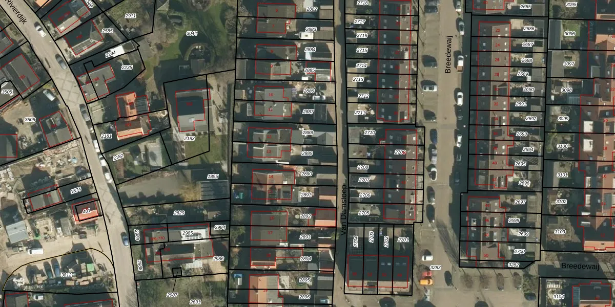 Gebruik de zoekbalk of klik op een perceel om informatie over het perceel te bekijken.