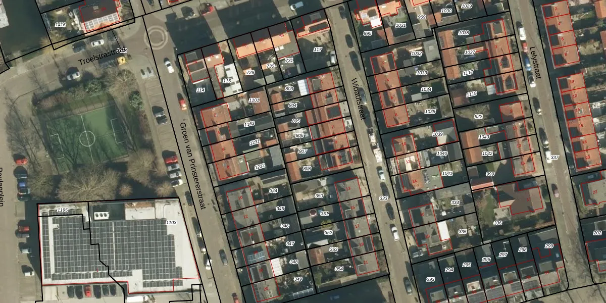 Gebruik de zoekbalk of klik op een perceel om informatie over het perceel te bekijken.