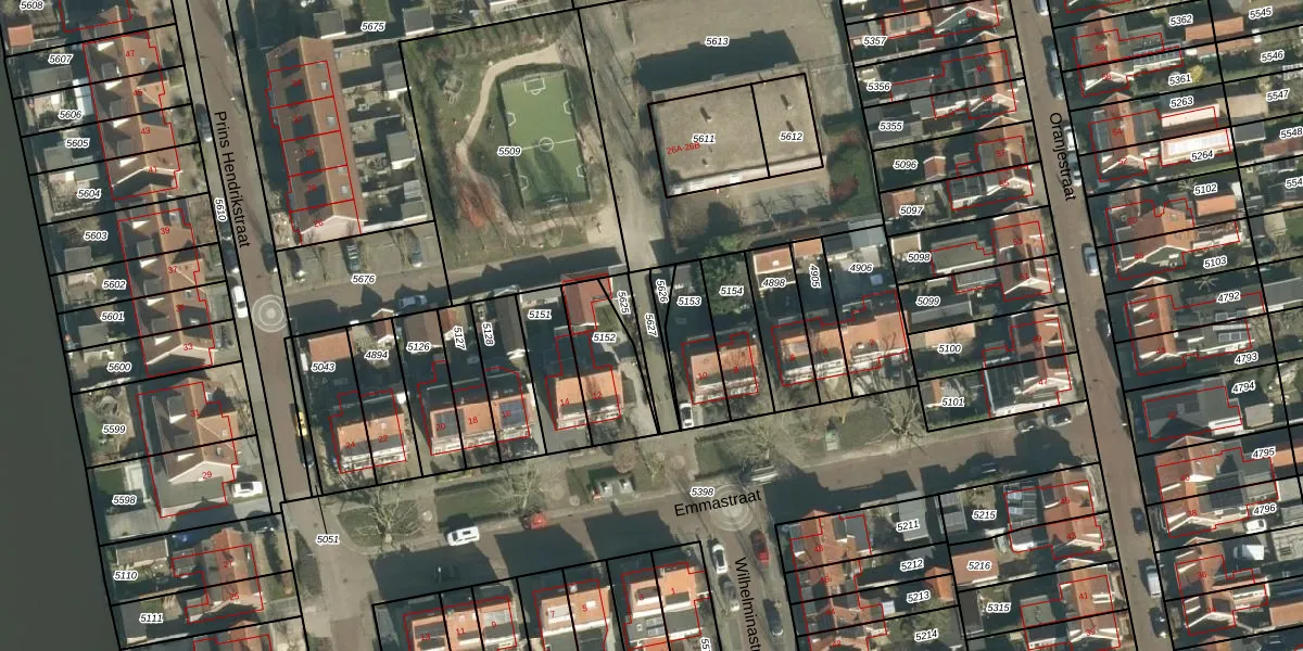 Gebruik de zoekbalk of klik op een perceel om informatie over het perceel te bekijken.