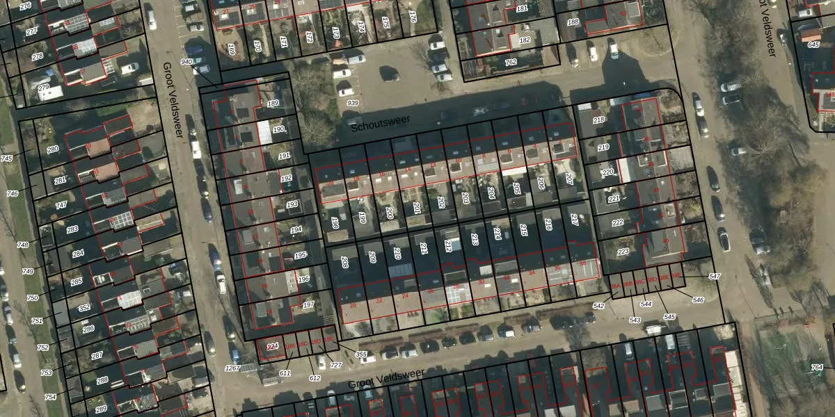 Gebruik de zoekbalk of klik op een perceel om informatie over het perceel te bekijken.
