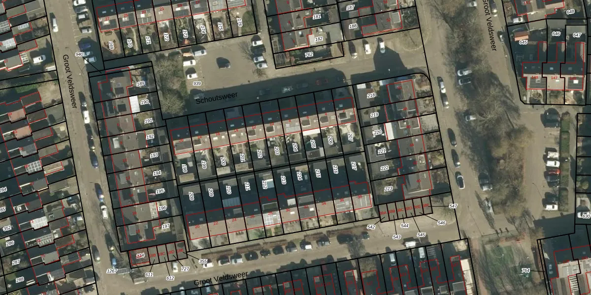 Gebruik de zoekbalk of klik op een perceel om informatie over het perceel te bekijken.
