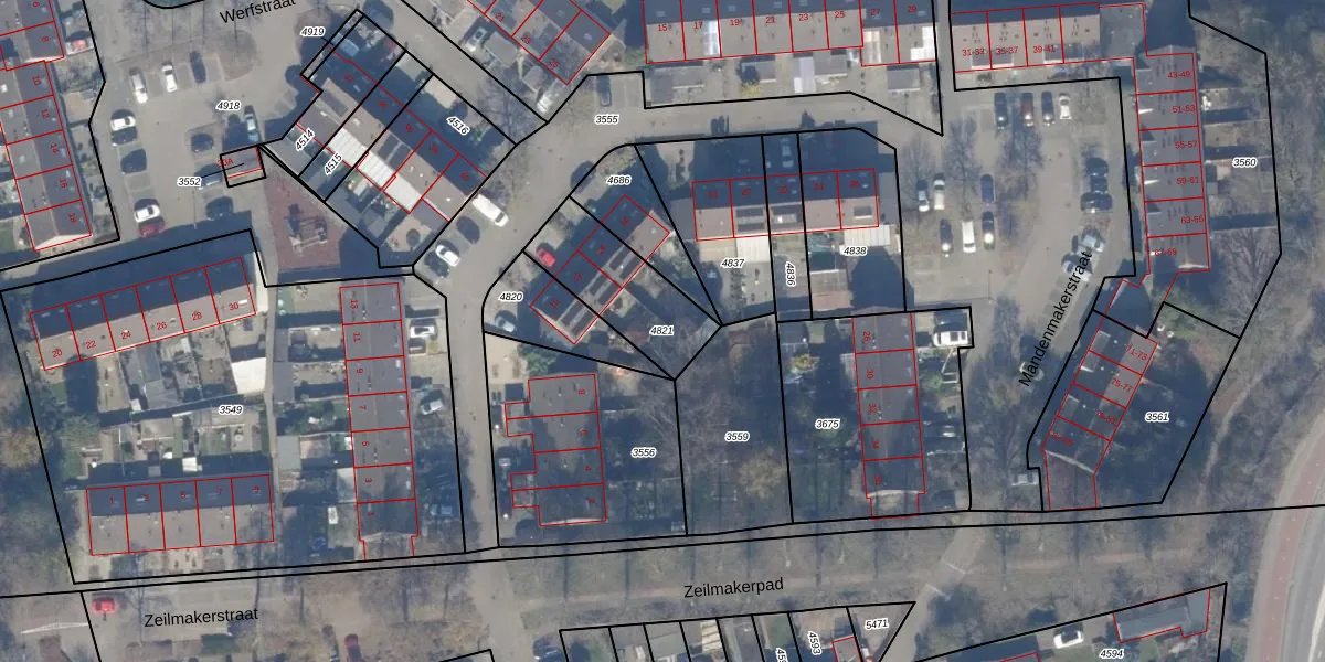 Gebruik de zoekbalk of klik op een perceel om informatie over het perceel te bekijken.