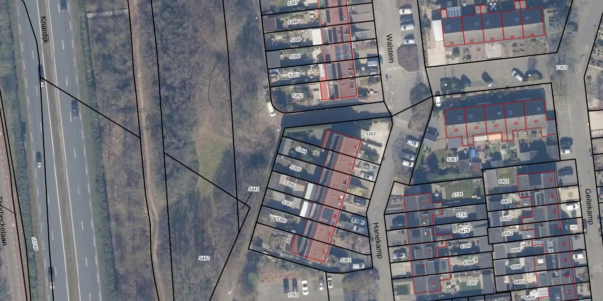 Gebruik de zoekbalk of klik op een perceel om informatie over het perceel te bekijken.