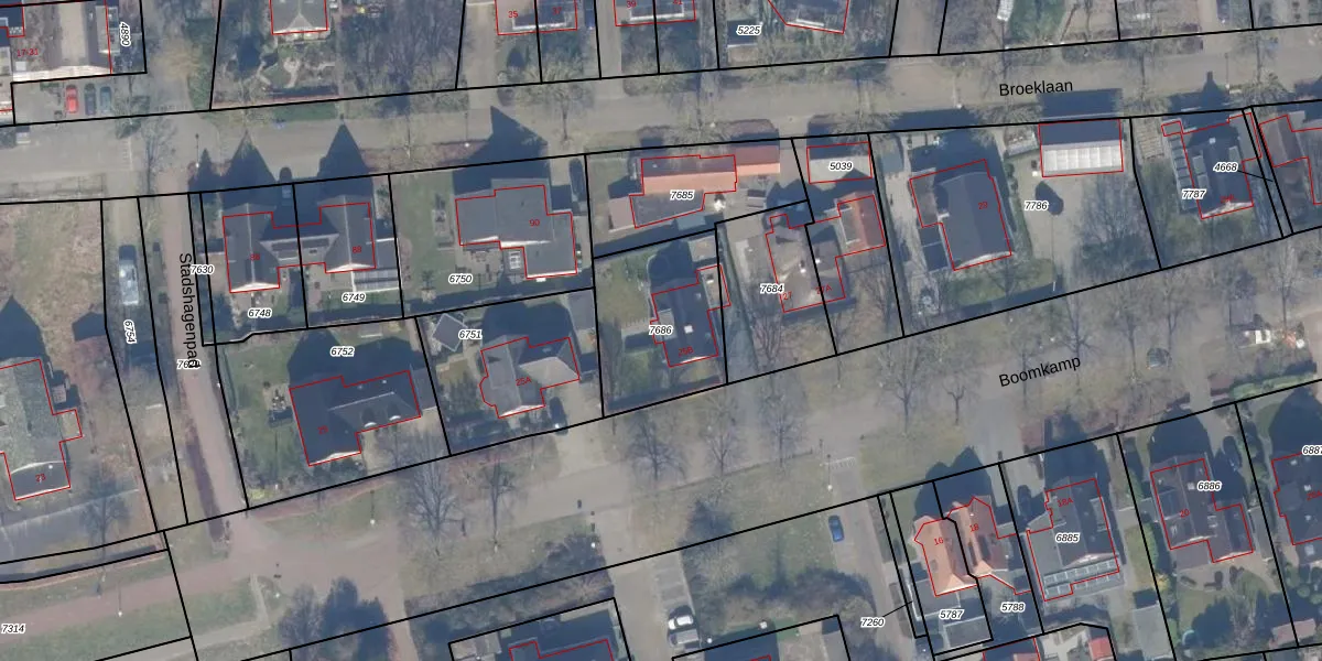 Gebruik de zoekbalk of klik op een perceel om informatie over het perceel te bekijken.