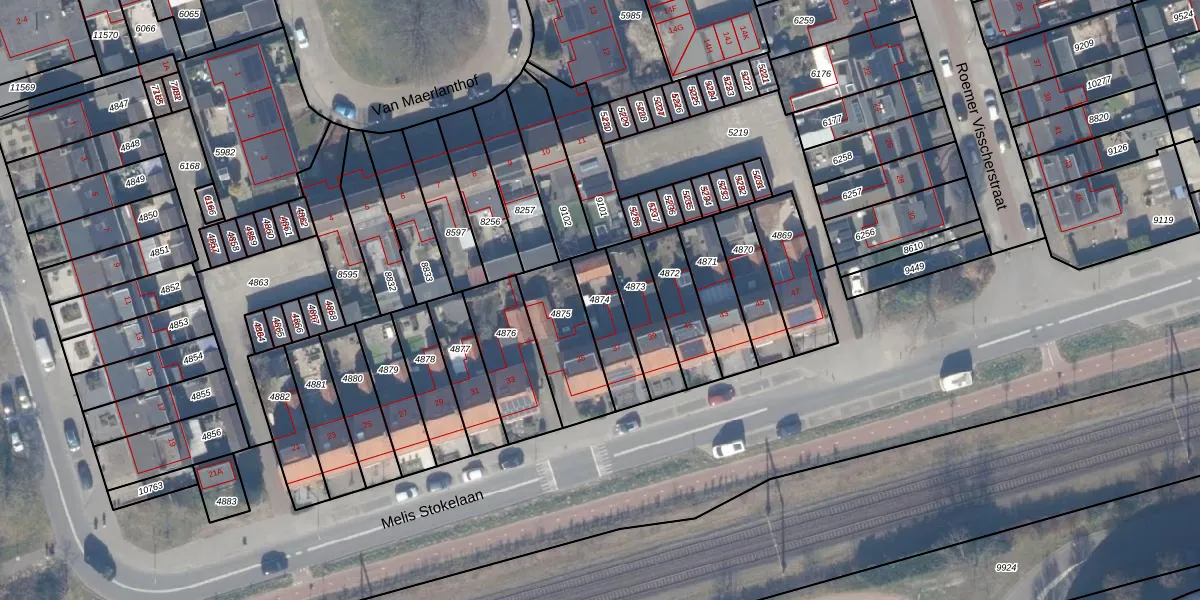 Gebruik de zoekbalk of klik op een perceel om informatie over het perceel te bekijken.