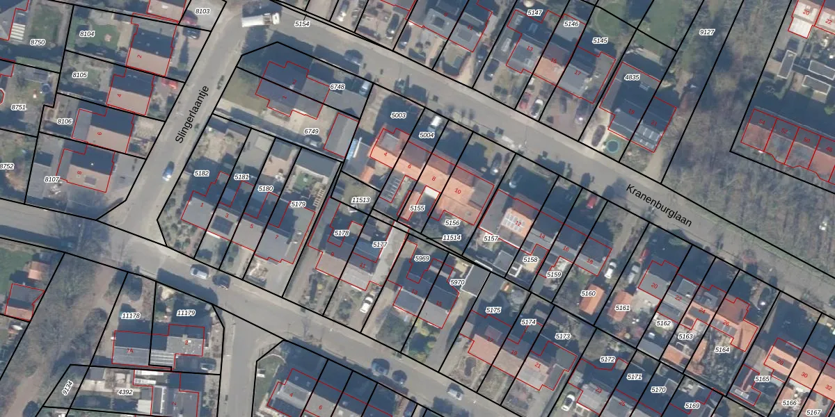 Gebruik de zoekbalk of klik op een perceel om informatie over het perceel te bekijken.