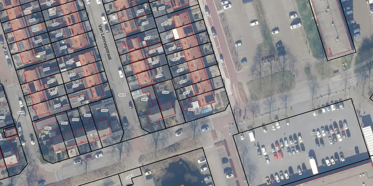 Gebruik de zoekbalk of klik op een perceel om informatie over het perceel te bekijken.