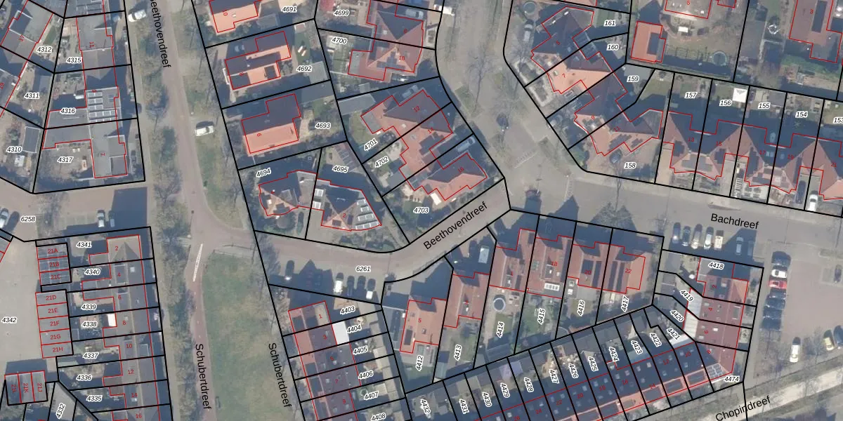 Gebruik de zoekbalk of klik op een perceel om informatie over het perceel te bekijken.