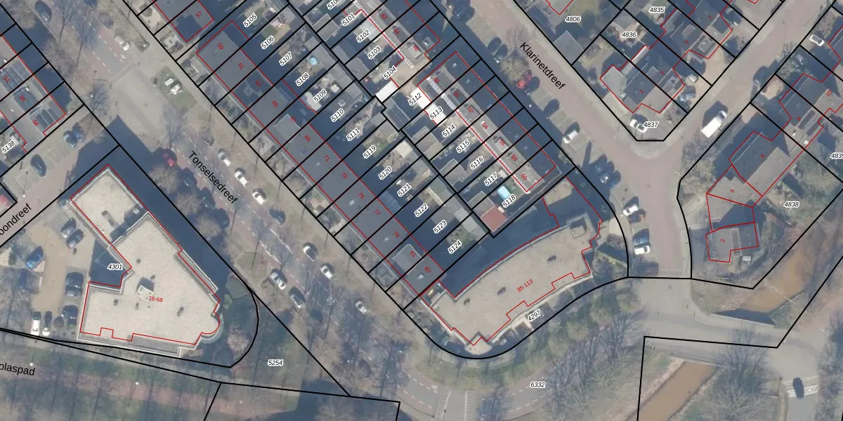 Gebruik de zoekbalk of klik op een perceel om informatie over het perceel te bekijken.