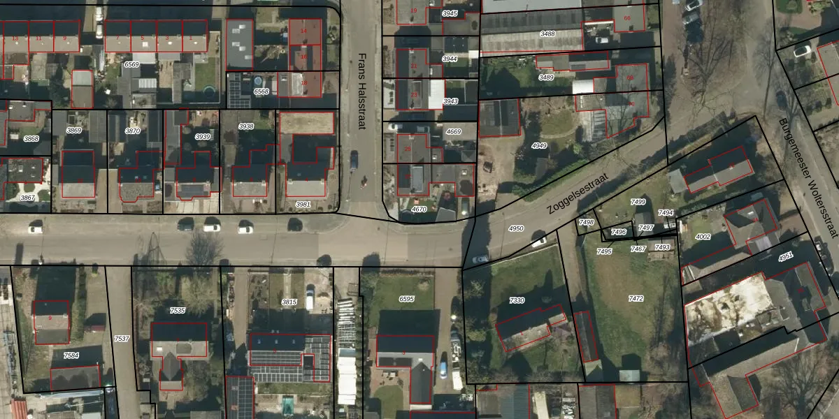 Gebruik de zoekbalk of klik op een perceel om informatie over het perceel te bekijken.
