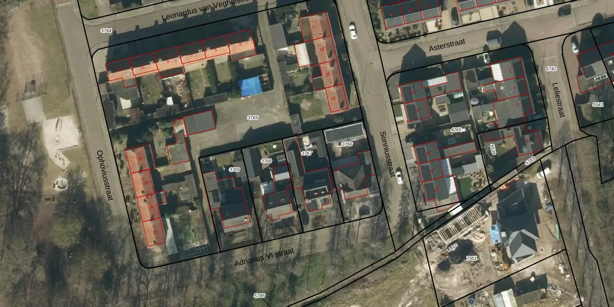 Gebruik de zoekbalk of klik op een perceel om informatie over het perceel te bekijken.
