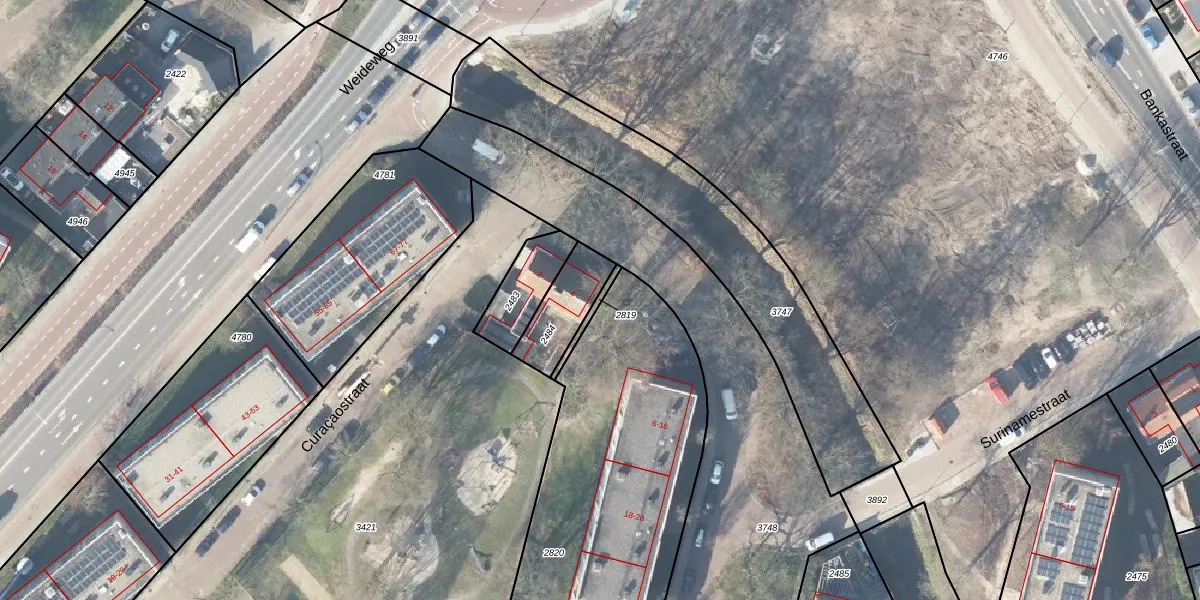 Gebruik de zoekbalk of klik op een perceel om informatie over het perceel te bekijken.