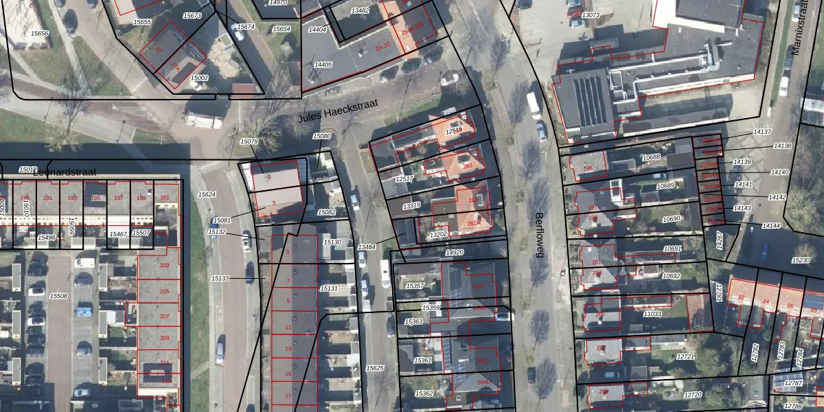 Gebruik de zoekbalk of klik op een perceel om informatie over het perceel te bekijken.