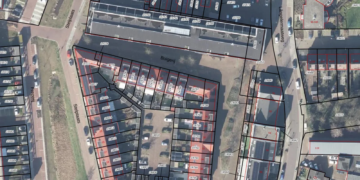 Gebruik de zoekbalk of klik op een perceel om informatie over het perceel te bekijken.