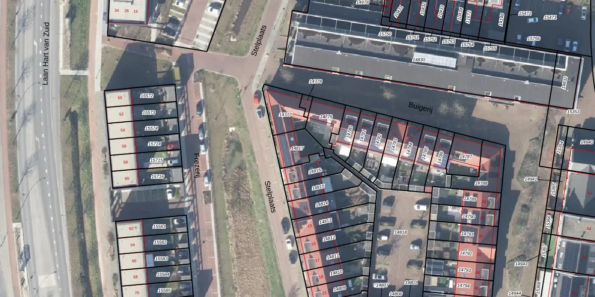 Gebruik de zoekbalk of klik op een perceel om informatie over het perceel te bekijken.