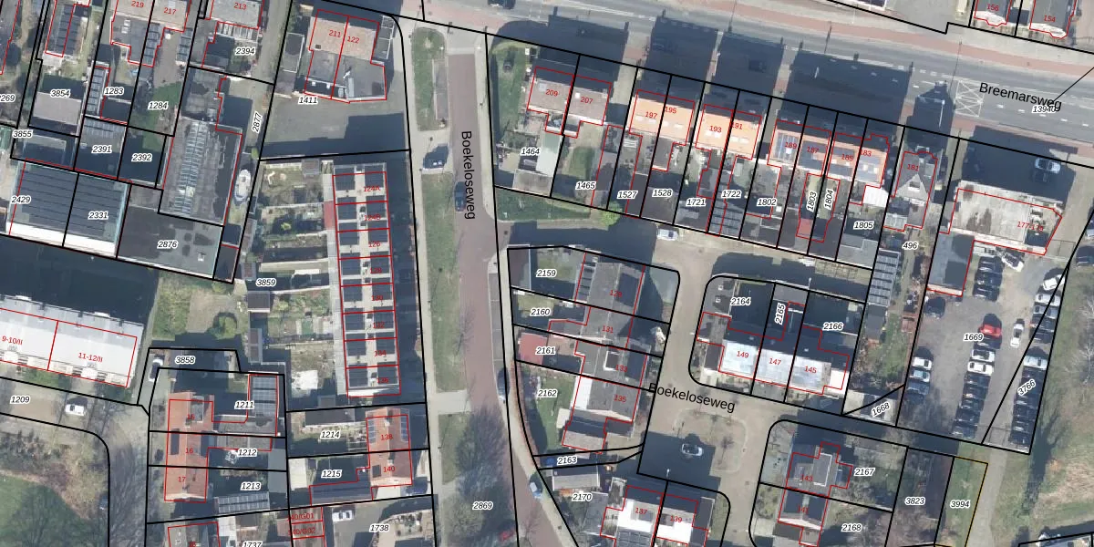 Gebruik de zoekbalk of klik op een perceel om informatie over het perceel te bekijken.