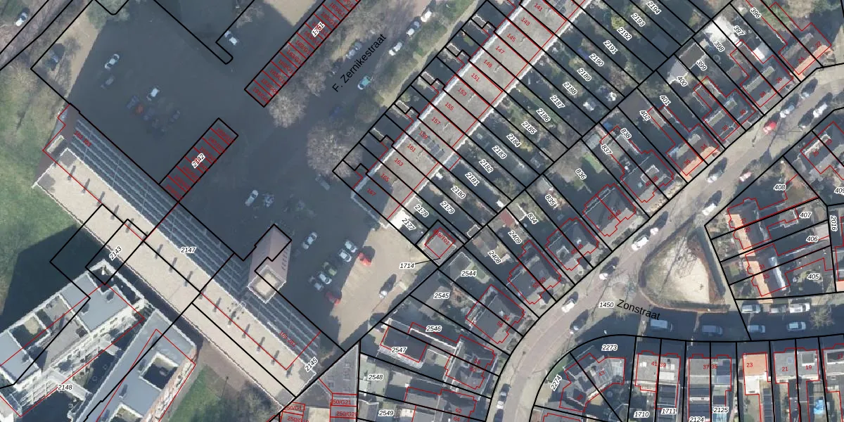 Gebruik de zoekbalk of klik op een perceel om informatie over het perceel te bekijken.
