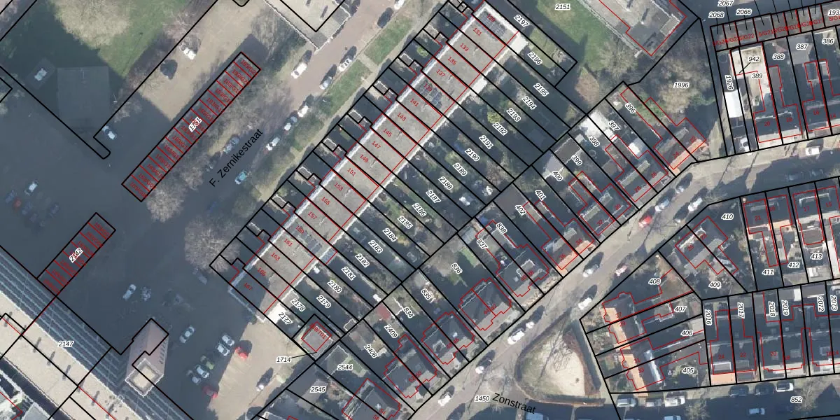 Gebruik de zoekbalk of klik op een perceel om informatie over het perceel te bekijken.