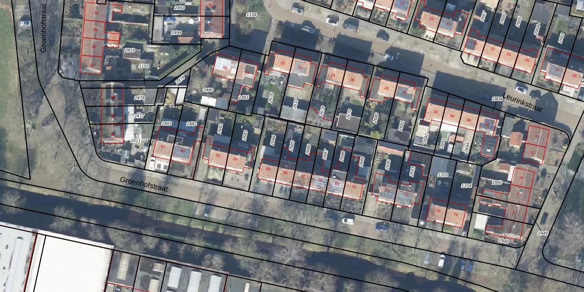 Gebruik de zoekbalk of klik op een perceel om informatie over het perceel te bekijken.