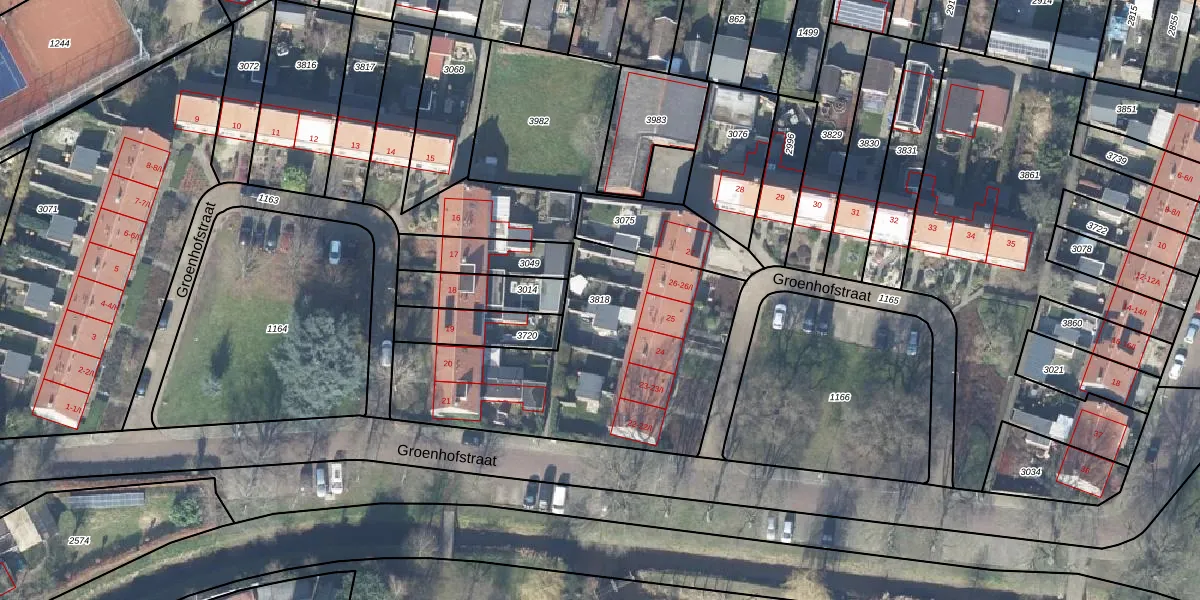 Gebruik de zoekbalk of klik op een perceel om informatie over het perceel te bekijken.