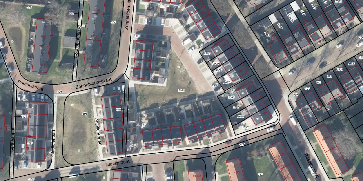 Gebruik de zoekbalk of klik op een perceel om informatie over het perceel te bekijken.